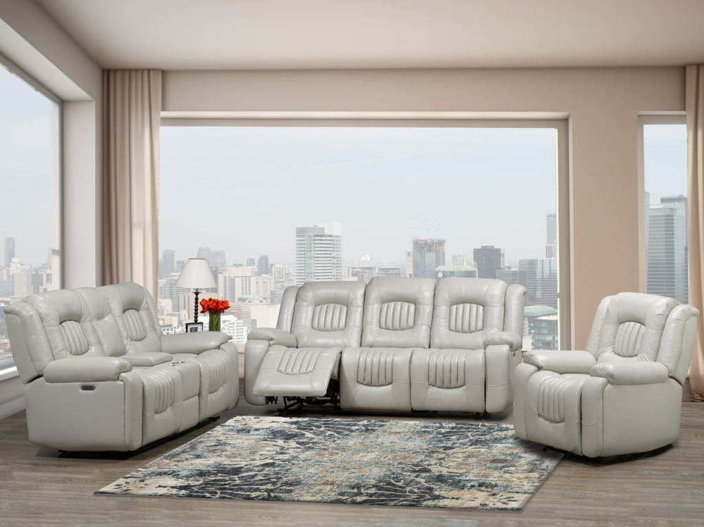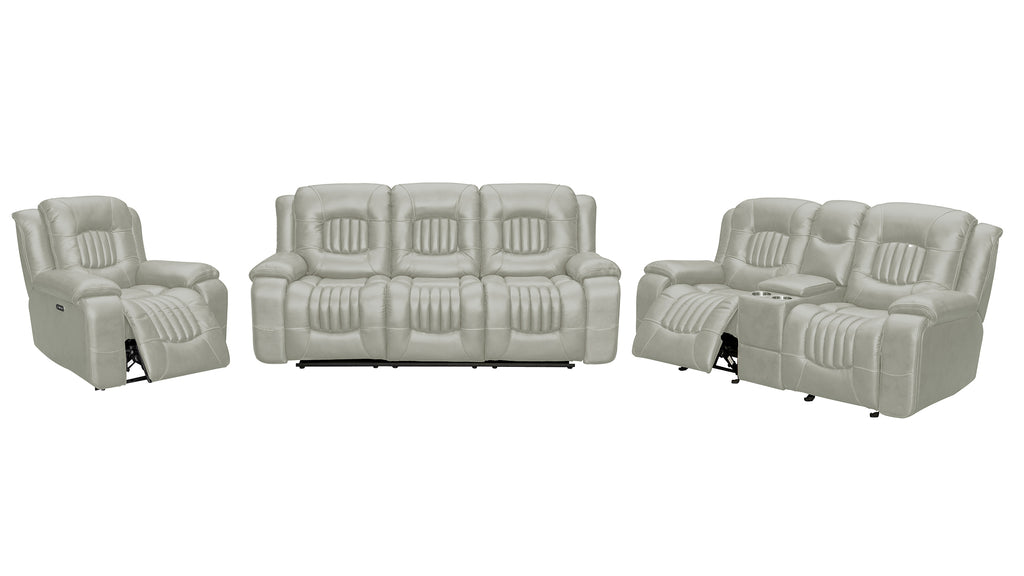 The Cooper 3pc Power Recliner Set combines premium leather-gel upholstery with modern power reclining technology for effortless comfort. Channel-stitched detailing delivers contemporary style, while the durable, soft upholstery resists wear and maintains its luxurious appearance. Perfect for those seeking both sophistication and functionality, this set transforms any living space into a personal retreat. Simply press a button to recline and unwind—no manual effort required. Ideal for families who value quality seating and contemporary design.