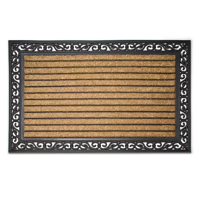 Greet guests with style! This elegantly-styled extra-large rubber and coir fibre doormat with a scroll border is perfect for inside or outside entrances.