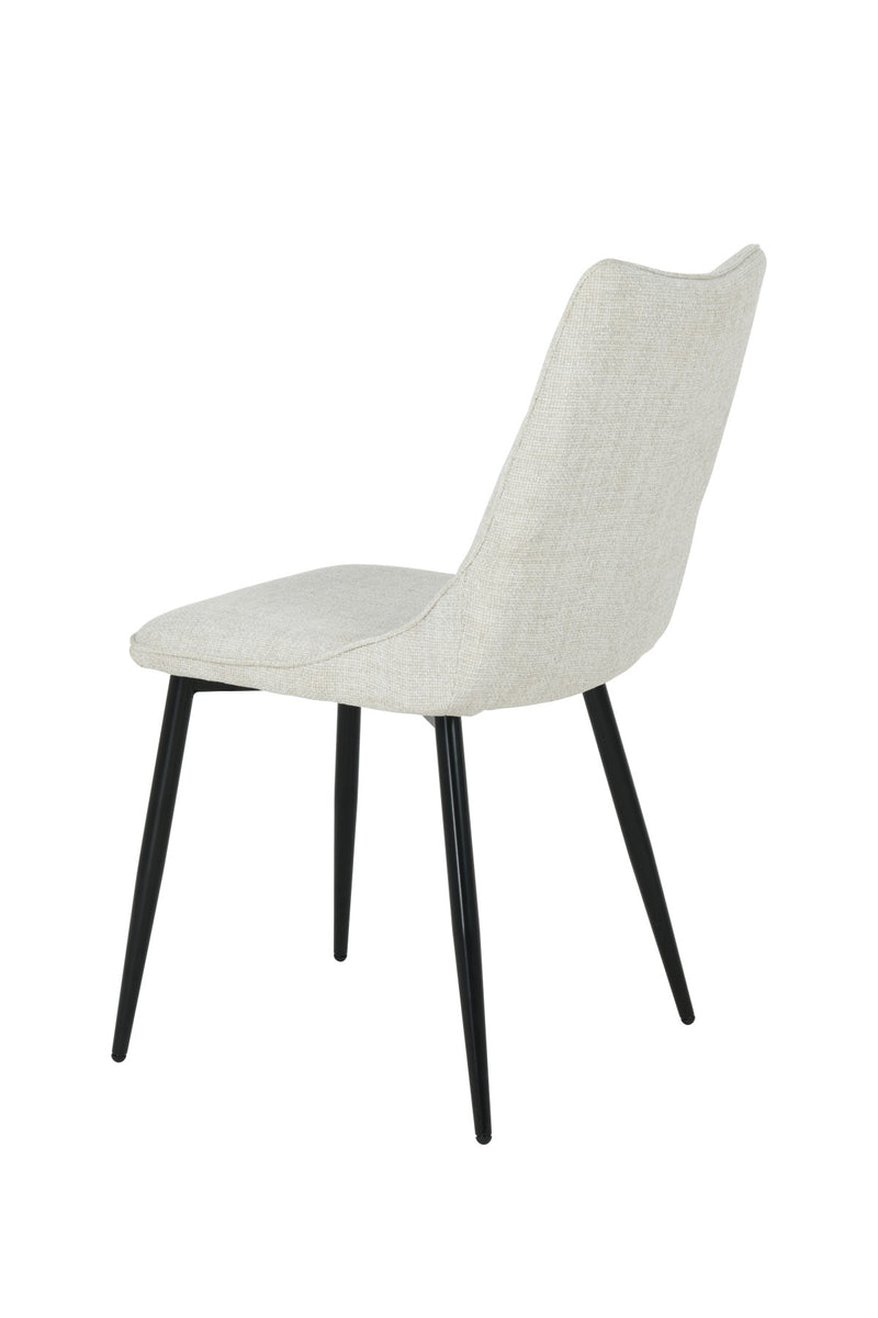 The Julian Dining Chairs are the perfect fit for a modern home. With an ergonomic design and luxurious textured fabric cover, you'll experience superior comfort and sophisticated style. The curved backrest provides exceptional support while the elegant splayed legs are finished in matte black powder coating β perfect for a bold contrast. Enjoy meals and conversations with family and friends in complete comfort with this stunning set of two dining chairs!