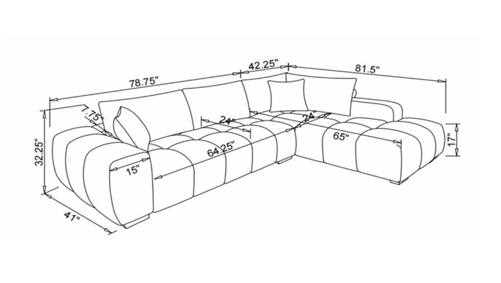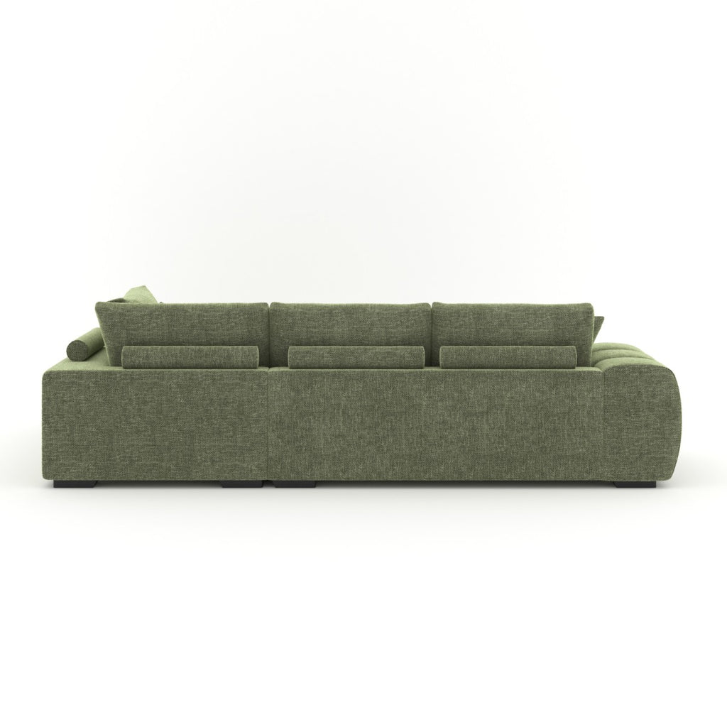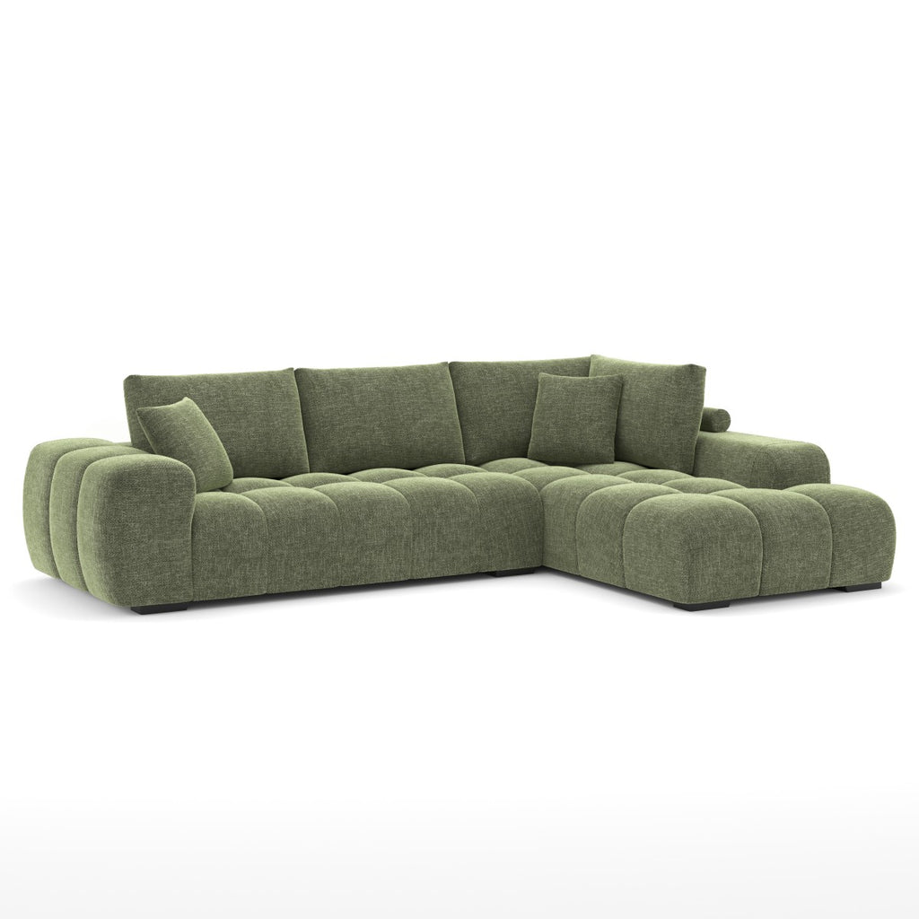 Transform your living room with the Zara Sectional in Green—a striking blend of contemporary elegance and everyday comfort. Wrapped in sumptuous 100% polyester fabric, this right-facing chaise sectional invites you to sink in and relax. Built with pocket spring and high-resiliency foam, it delivers responsive support that lasts for years. The corner-blocked frame ensures stability, while meticulous stitching details add sophisticated character. Whether you're hosting gatherings or enjoying quiet evenings, this modern statement piece brings both style and substance to your home.