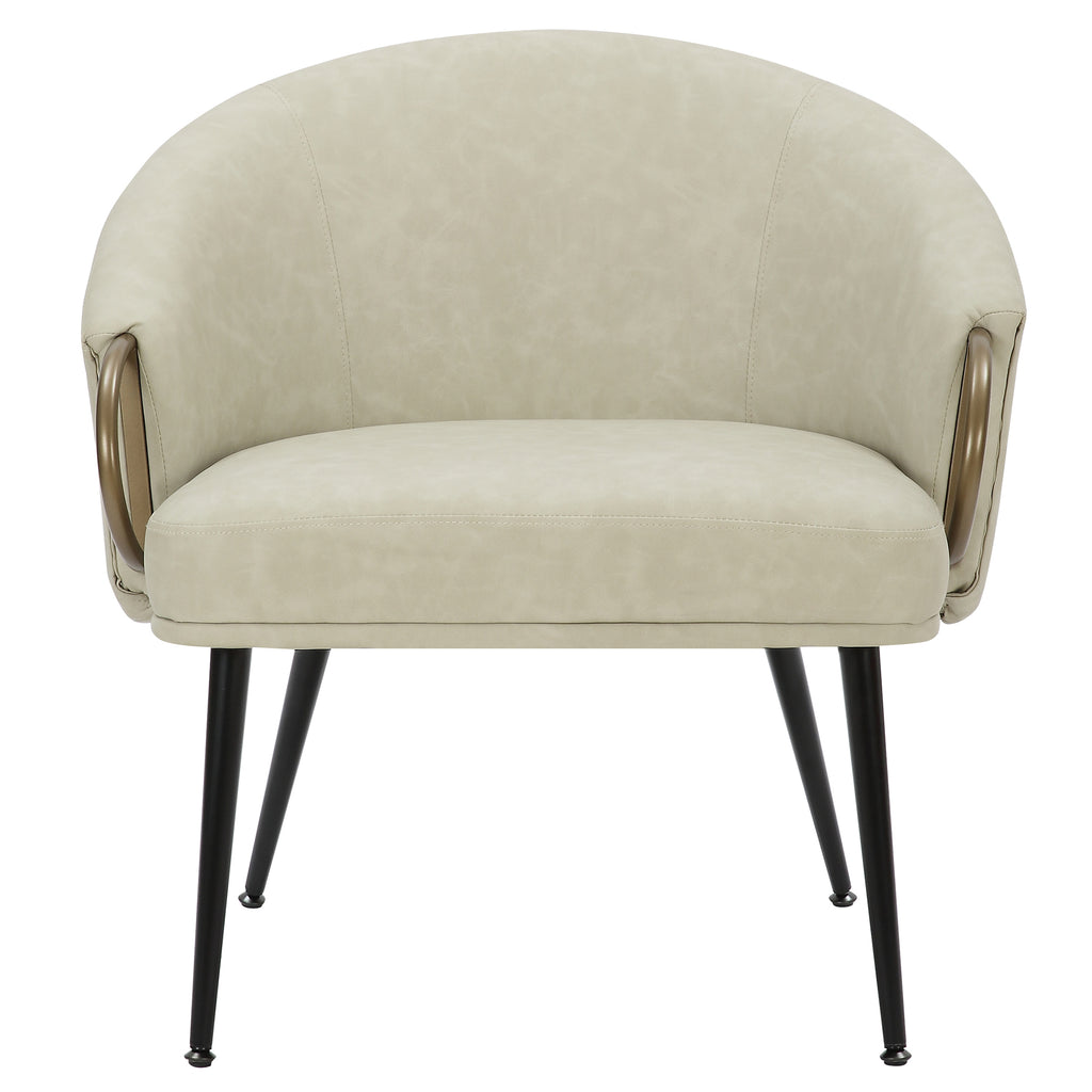 This beautiful mid-century inspired accent doesn't need to be an accent - it can easily be the centre of attention in any room. The vintage faux leather is complemented perfectly with the aged gold accents and the bucket seat not only looks inviting but will provide hours of comfort.