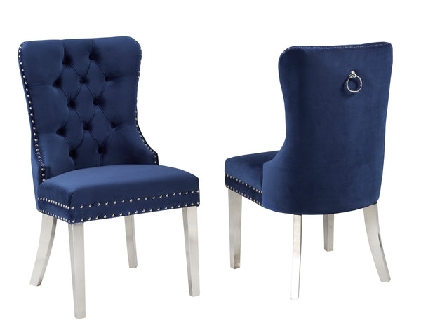 Navy/Chrome Dining Chairs, Set of 2