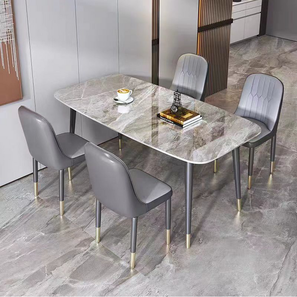 Rocca/Cora 5pc Dining Set in Walnut with Grey ChairRocca/Cora 5pc Dining Set in Walnut with Grey Chair