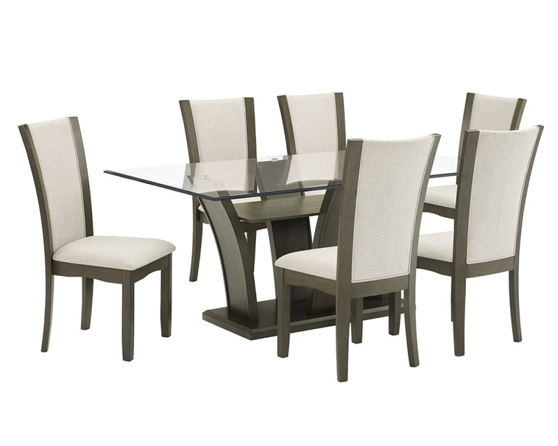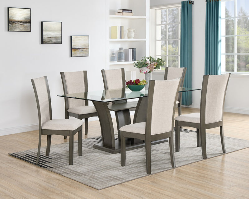 Elevate your dining experience with the Aria Dining Set in Espresso. Crafted with a blend of rubber wood and bentwood, the set exudes a sleek, modern style. The 12mm glass-top table and polyester fabric chairs with accent stitching add a touch of elegance. With splayed legs for stability, this set will be the perfect addition to your dining space.