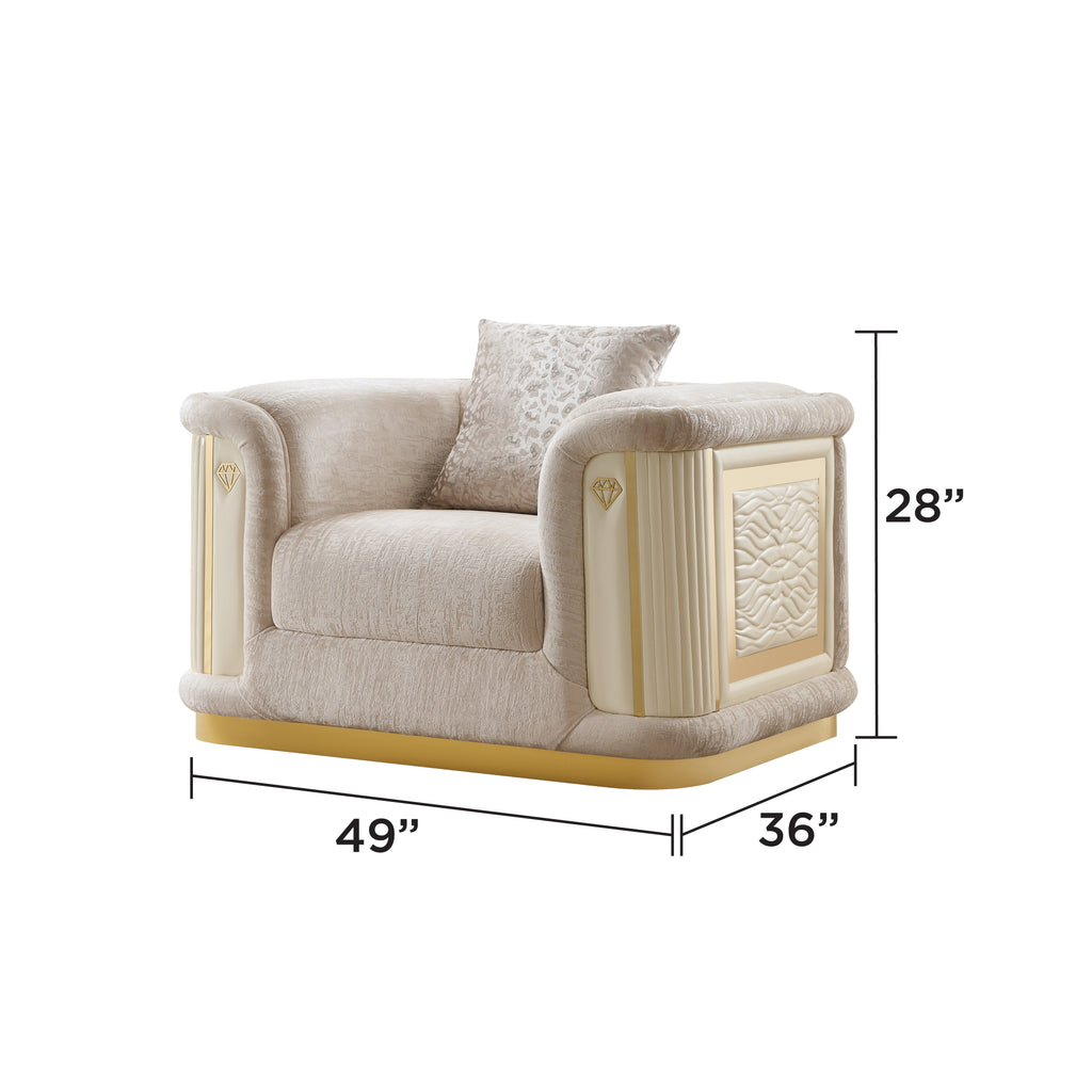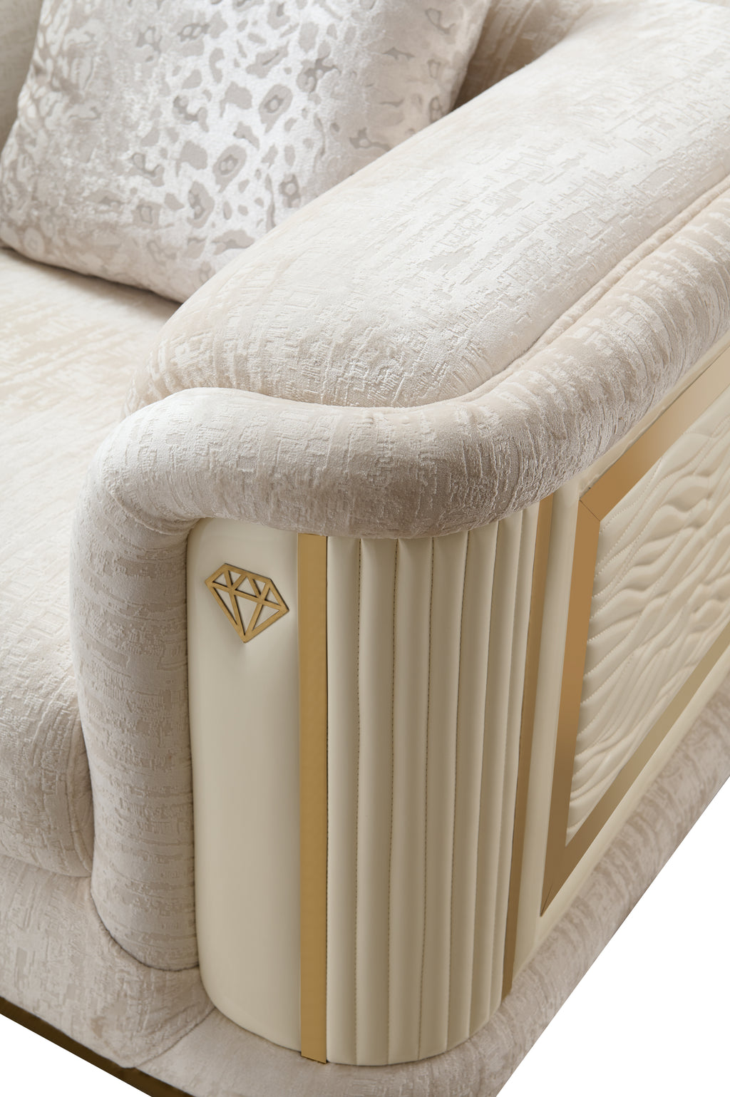 Transform your living space with the Bonita 3-piece Sofa Set, where elegance meets everyday comfort. This sophisticated collection includes a sofa, loveseat, and chair—all wrapped in sumptuous upholstery and adorned with refined gold accents and intricate detailing. The neutral palette adapts seamlessly to any interior style, while the thoughtfully proportioned pieces maximize space without sacrificing luxury. Whether you're hosting gatherings or savouring peaceful evenings, this set delivers the perfect balance of style and functionality for the modern home.