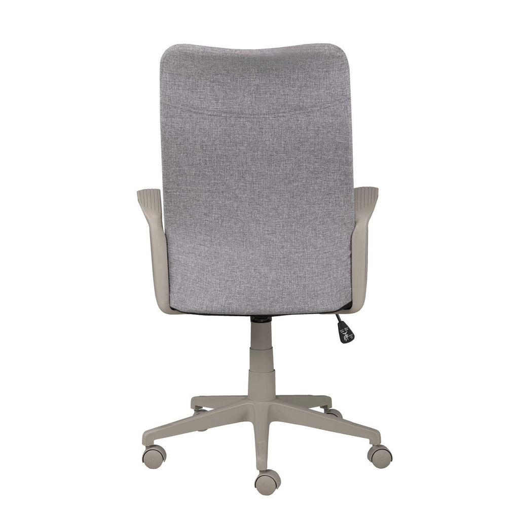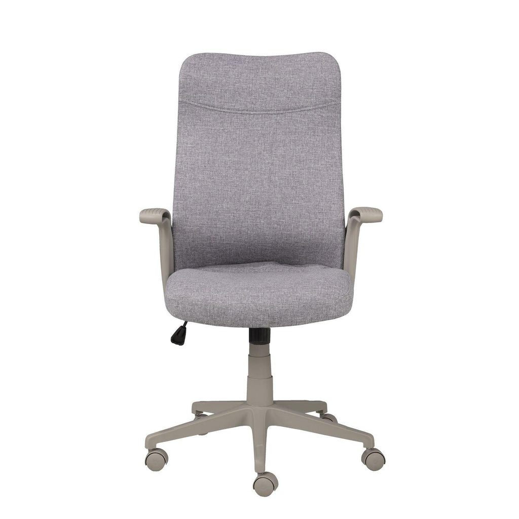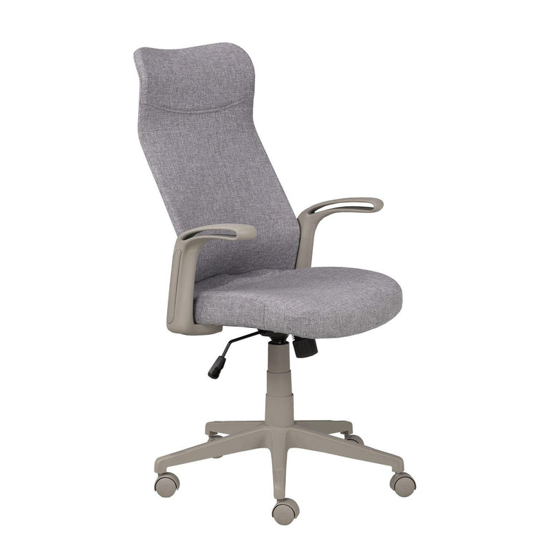 Set yourself up for success with the high-backed, Milan ergonomic office chair. As fashionable as it is functional, this sleek chair features a convenient tilt mechanism and hydraulic lift function to ensure proper alignment while you’re working at your desk. Lean into the full-back and headrest and place your arms on the curved armrests to enjoy comfortable support as you work. The sturdy pedestal base features five wide legs for stability, each with a rolling castor for ease of movement. The rich fabric cover is finished in a neutral black color that easily complements any home office décor with its clean and contemporary look.