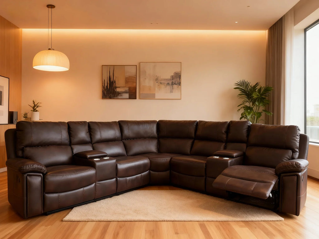Sink into comfort with the Maverick Manual Recliner Sectional, designed for relaxation and convenience. Featuring faux leather upholstery that's easy to clean and maintain, this sectional offers two manual reclining end seats so you can customize your recline to the perfect angle. Dual storage consoles with integrated cup holders keep beverages and essentials within arm's reach, making movie nights and gatherings effortless. Ideal for families seeking both style and functionality in one sophisticated piece.