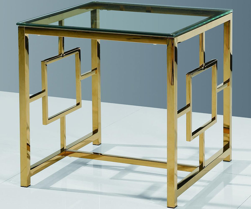 Make a statement with the Naomi End Table. Featuring a luxurious gold finish steel frame and a tempered glass top for lasting durability, this end table pairs seamlessly with its matching coffee table to add a modern touch to your living space. Experience a higher level of sophistication with this timeless piece!