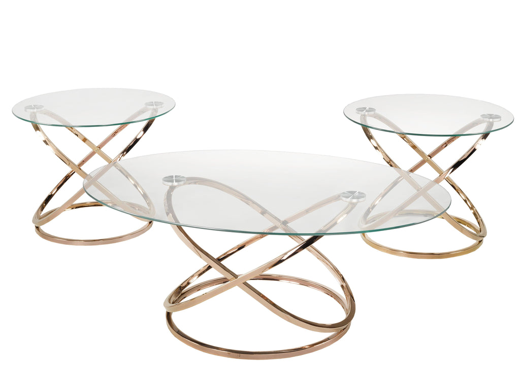 This 3pc Rose Gold Coffee Table Set brings a modern flair to any living space. With chic, airy frames and durable tempered glass tabletops, this set will upgrade your space with its sophisticated style and ample surface space. Make a stylish impression and enhance your living room or family room with this stunning three-piece set.