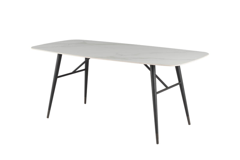 Contemporary styling meets timeless elegance with Almalfi Dining Table. Crafted with meticulous attention to detail, this dining table is designed to be the centrepiece of your dining space. The 12mm ceramic tabletop is a true marvel, featuring cascading veins that not only add a touch of sophistication but also make each table unique. The ceramic surface is not only beautiful but also incredibly durable, ensuring that your table will remain stunning for years to come. Complementing the tabletop, the Almalfi Dining Table boasts black powder-coated splayed legs that provide stability and a modern flair. These legs not only enhance the table's overall aesthetics but also ensure it stands strong during every gathering, be it an intimate family dinner or a lively dinner party with friends. Elevate your dining experience with the Almalfi Dining Table, a fusion of contemporary design and enduring craftsmanship that promises to create unforgettable moments around the table.