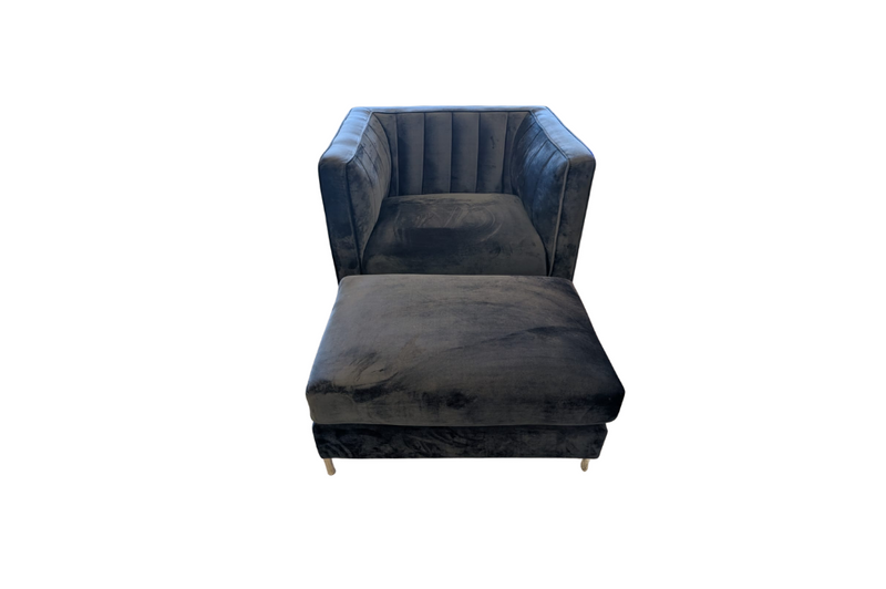 Experience timeless elegance with the Arthur Chair & Ottoman set in black velvet. The luxurious channel tufting adds a sophisticated texture, while the solid stainless steel legs with a chrome finish ensure lasting stability and modern style. Perfect for relaxing or entertaining, this set combines comfort and durability to elevate any living space.