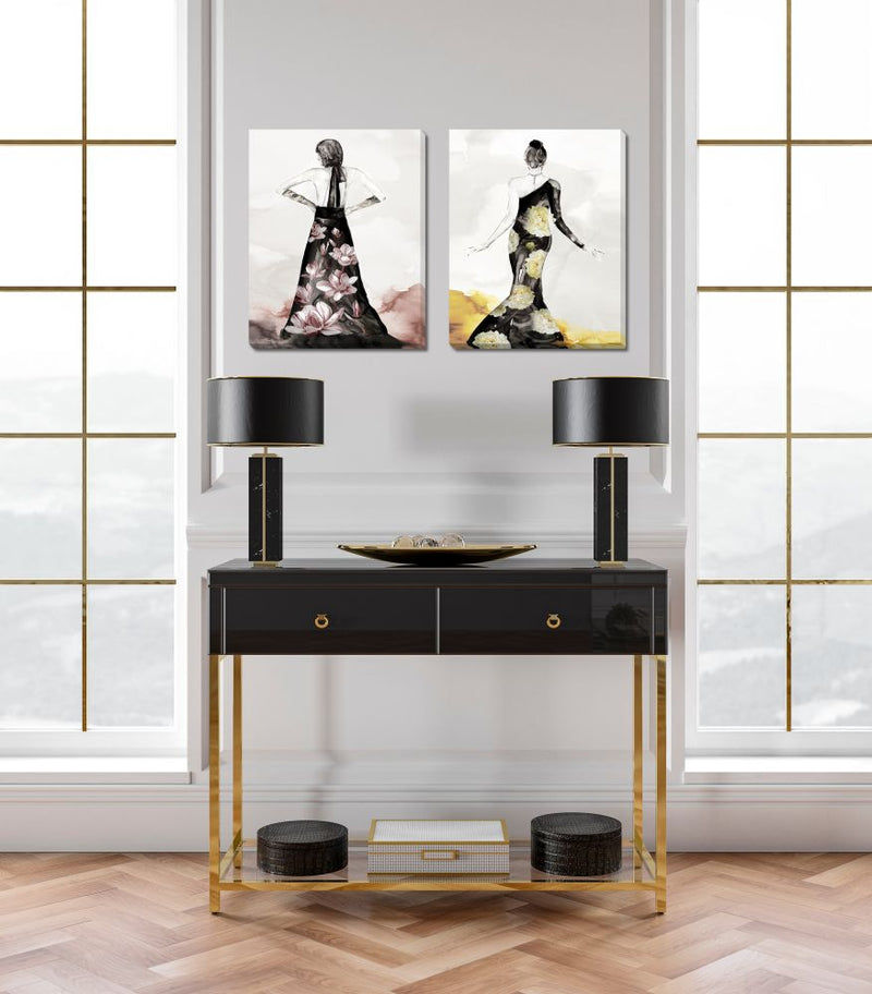 Add a chic touch to any room with this set of two hand-embellished art canvases that have been gallery wrapped around pine stretcher bars. Their 16" x 20" size is perfect for adding a statement to any wall, making a perfect addition to your home decor!