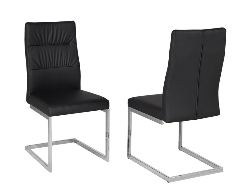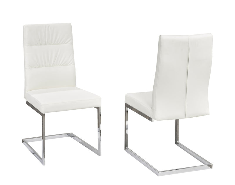 Experience the chic style and luxurious comfort with this set of two Dining Chairs, available in Black or White. With a rich fabric cover and chrome-finished legs, these elegant chairs complement every décor, while the streamlined armless design adds a sleek and on-trend look. Plus, the plush padded back and seat provide a comfortable seating option for the whole family.