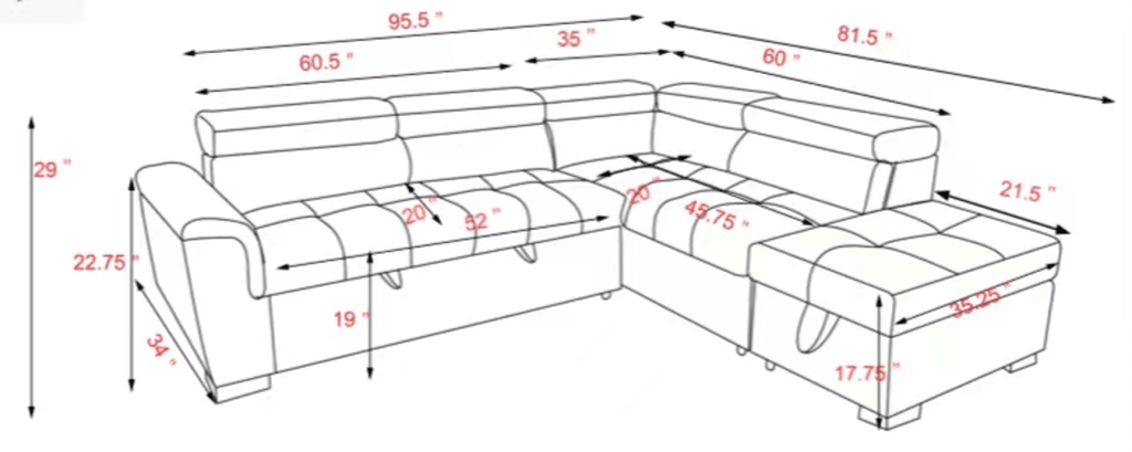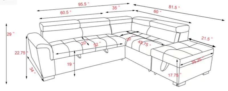 Dimensions: 95.5" x 60-81.5" x 29-34"H