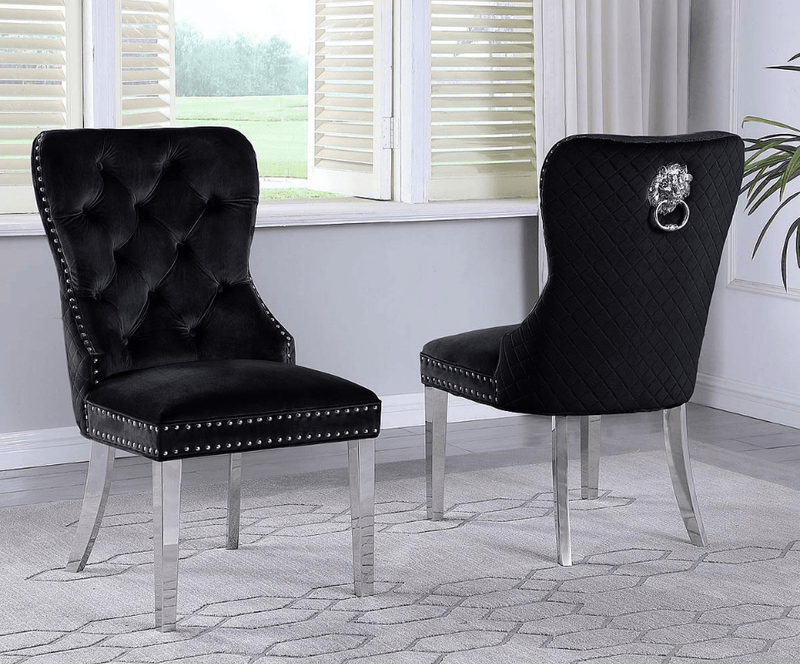 Experience exceptional comfort and classic style with the Kyra Chairs! These stylish chairs feature luxurious velvet upholstery, luxe nailhead trim, and lion-shaped handles for added sophistication. The plush seat cushion and thick back padding offer a plush level of comfort perfect for any living room. Elevate your decor with the impeccable blend of contemporary and traditional design of the Kyra Chairs.