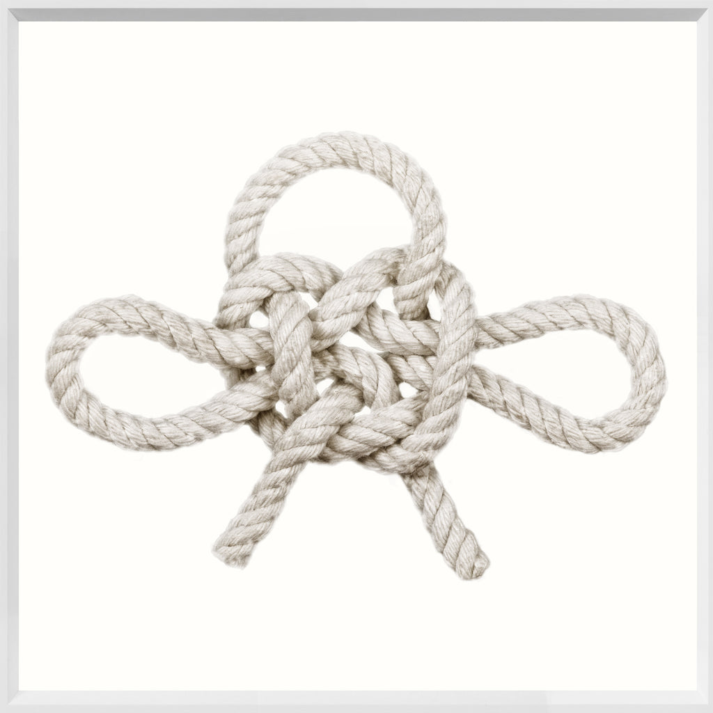 Bring an air of the sea into your home with this classic Maritime Knots wall art. Measuring 19" x 19" with an oversized, raised matte framed in white, it's a timeless piece that's perfect for any home. Neutral colours like taupe, grey, and white create a tranquil atmosphere, bringing calm and comfort to any room. Ahoy!