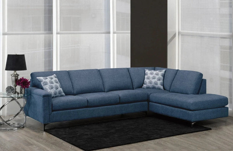 Upgrade your living room with the Pulsar Sectional Sofa. Proudly made in Canada, this Canadian kiln-dried hardwood and high-quality engineered wood sofa features a simple, tidy design with track arms and a button application for added comfort and style. The chrome legs add a touch of modernity to this classic piece that will elevate any room setting. Relax in style and comfort with the Pulsar Sectional Sofa.