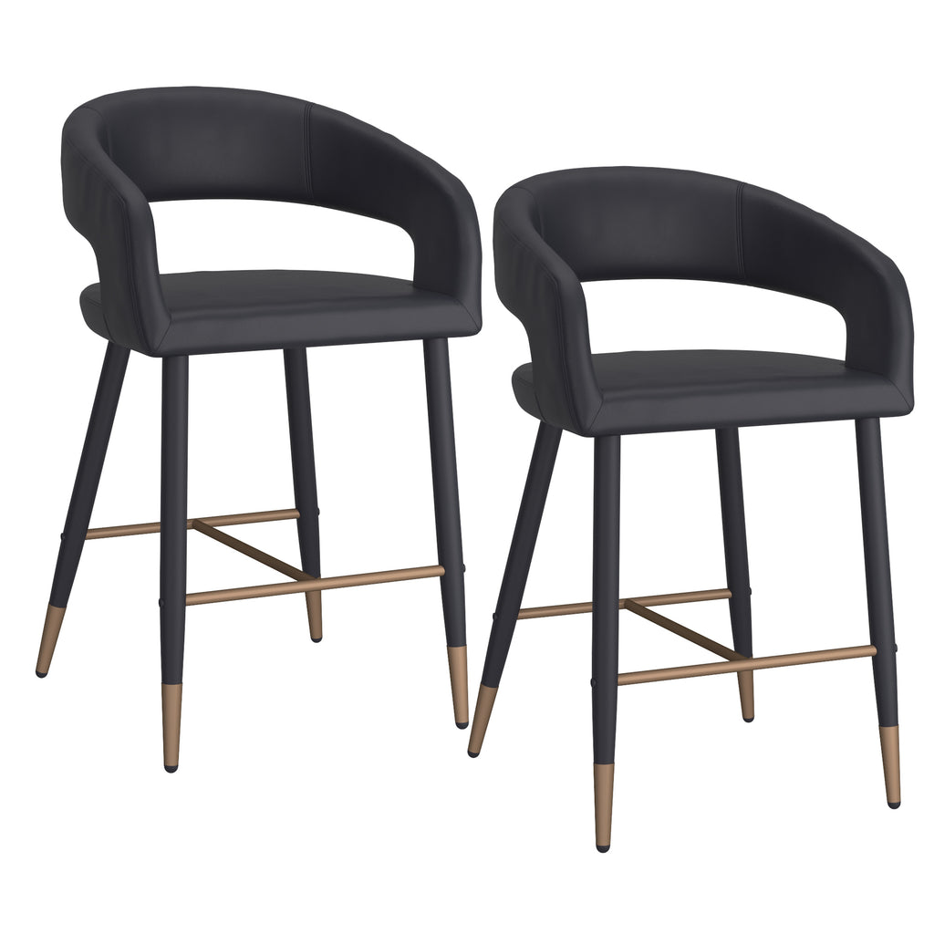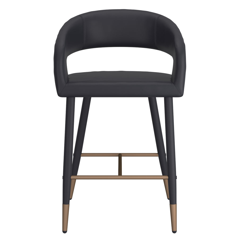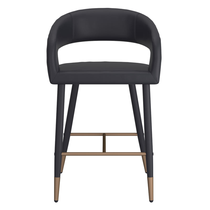 Comfort and style come together to make a statement in your space. This modern counter height stool features a curved high back to offer support for hours hanging out at the kitchen island. The black on black faux leather and metal base combination is a fabulous contemporary touch and will work to modernize any style room. Use as everyday seating in kitchens or more formal bar settings.
